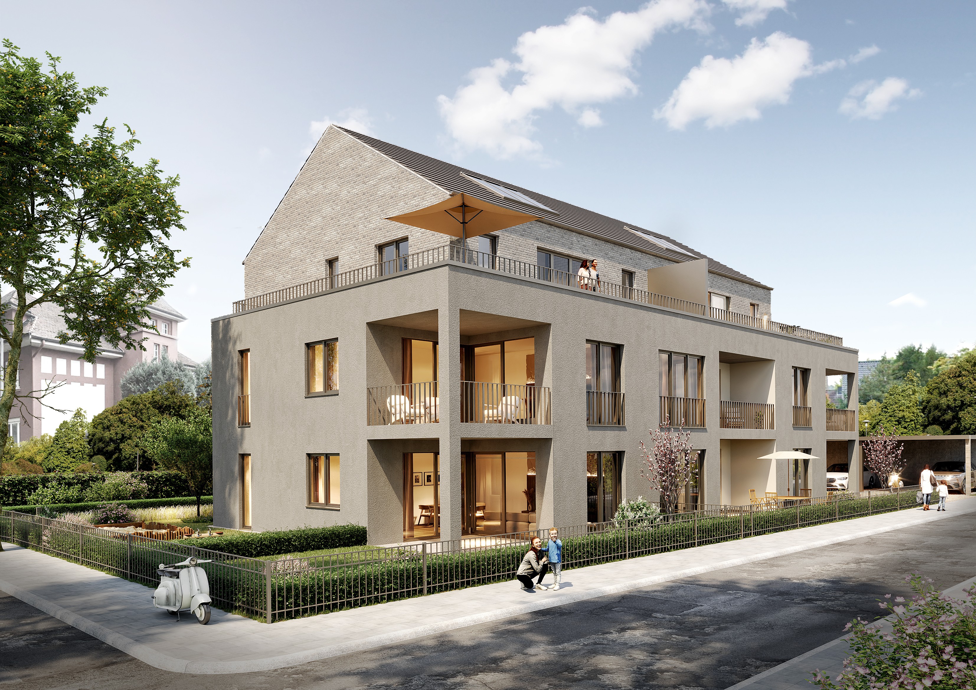 Das Mehrfamilienhaus entsteht in ruhiger Wohnlage von Alt-Erkrath, geprägt von gepflegten Wohnhäusern, sanierten Altbauten und modernen Mehrfamilienhäusern.